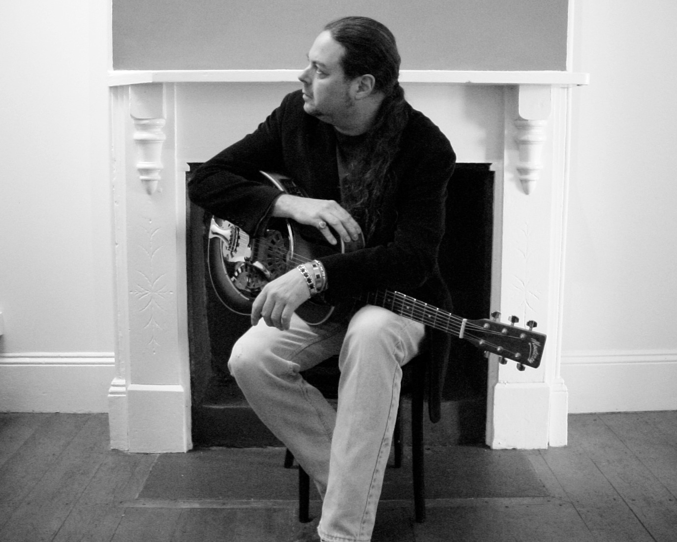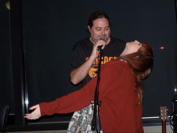 2012. Katoomba NSW Australia. House jam at my place, with one the Blue Mountains' best music promoters, Meg Benson. And that's San Antonio folk legend Jack Pledge, behind us.