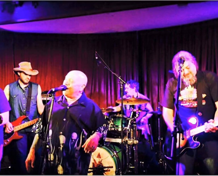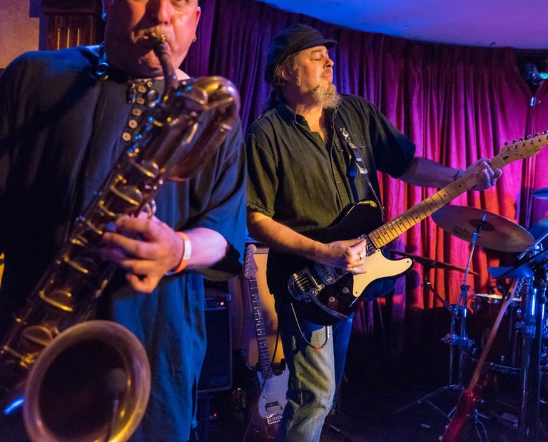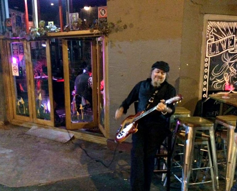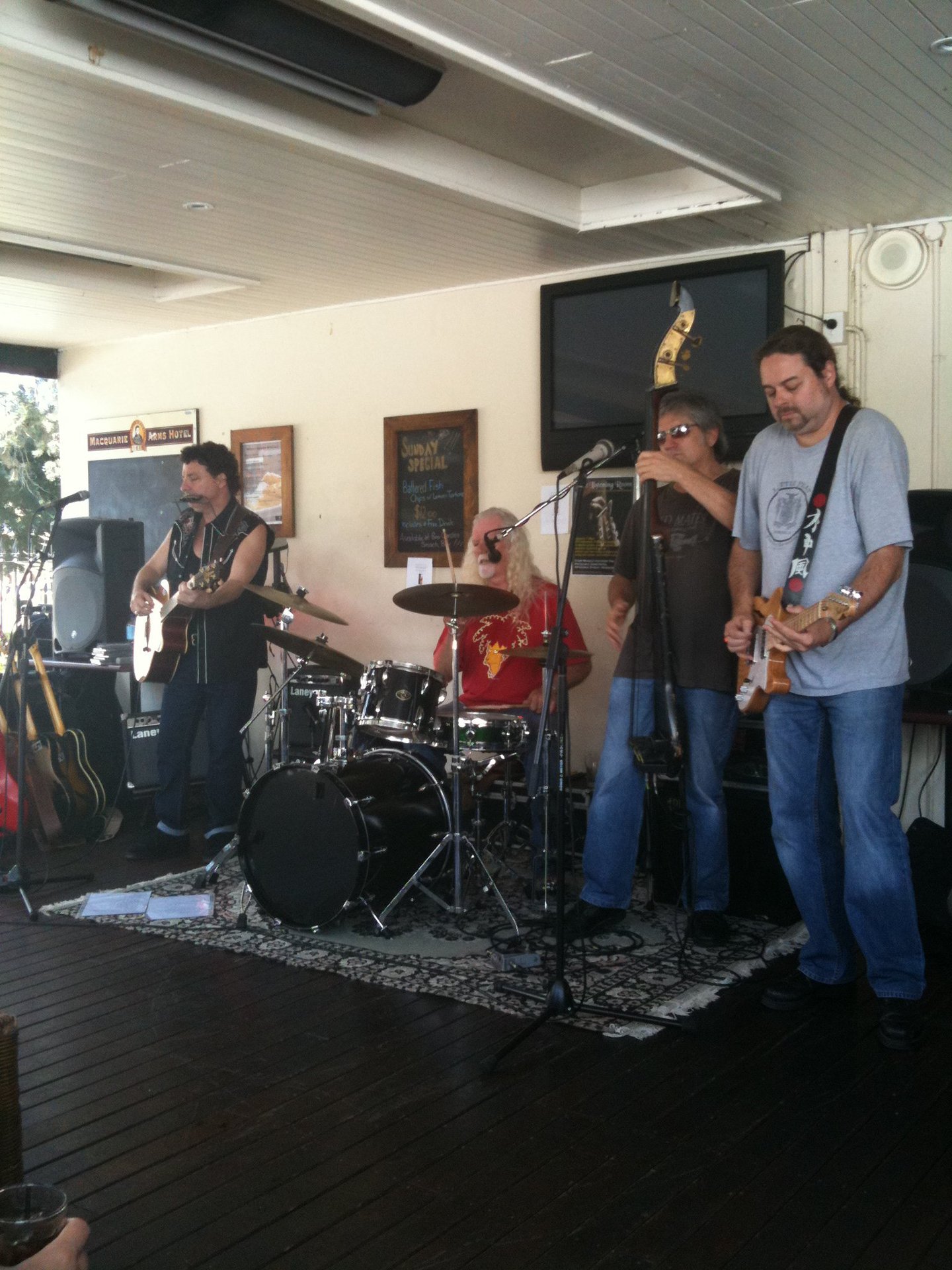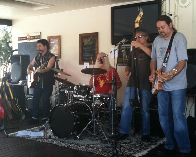 2015. Katoomba NSW Australia. Hotel Blue, with my 120th incarnation of " The Cletis Carr Band." That's former Nick Lowe drummer Peter Wale behind me. Photo by Victor Zubakin.