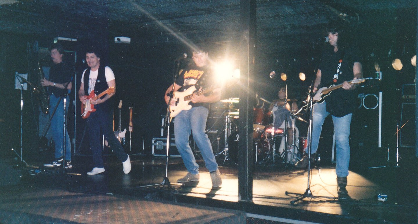 1983. Some bar in Eugene OR. With the band Baffled. Darren Madsen to my right.
