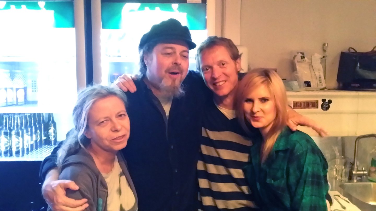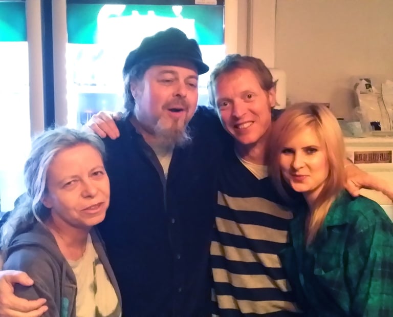 2016. Springfield OR. Musician buddies from the early days. L-R: Henry Cooper, Charlie Madsen, CC, Sneakers bassist Johnny Zipgun.