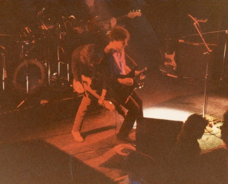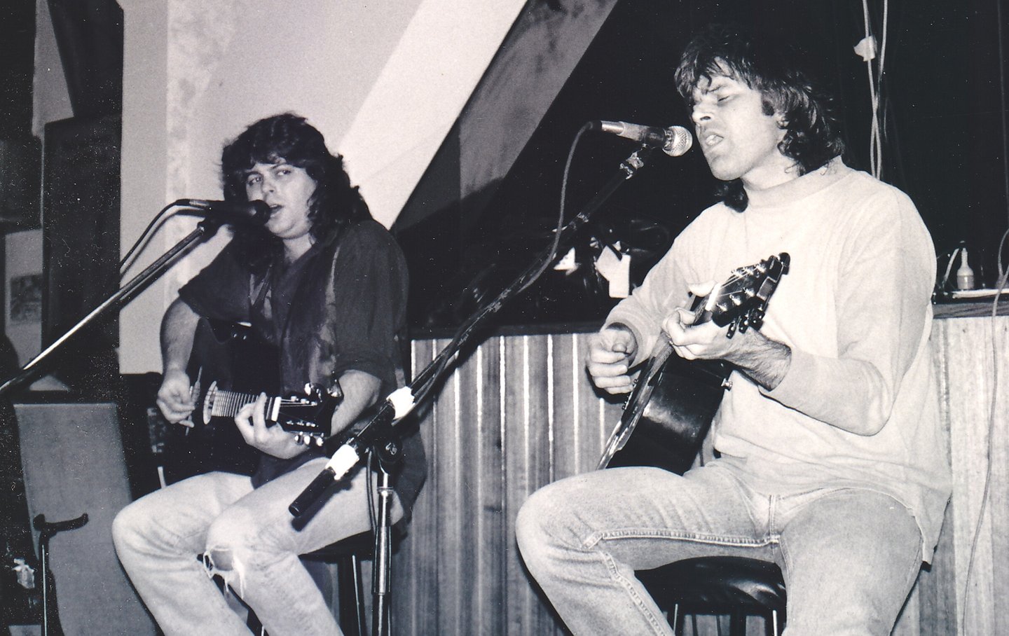 1986. The Playroom, Gold Coast QLD Australia. With Good Home Cooking, doing guitar battle with Scott Whatman.