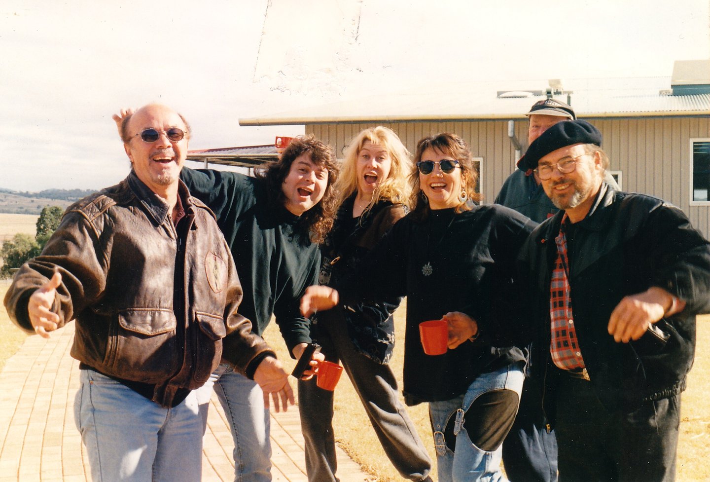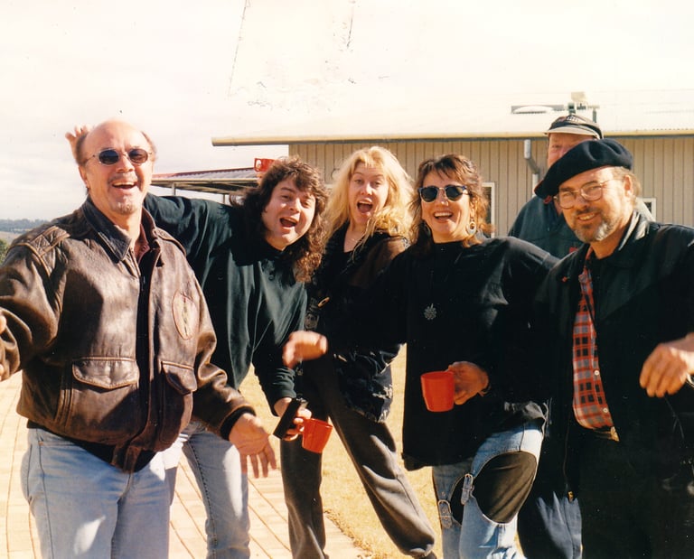 1995. Some campground in rural NSW Australia. The first annuel Warner-Chappell Music songwriter's retreat. L-R: Glenn Cardier, CC, Donna Fisk, Rosemary Rae, Ossie Clark, Dobe Newton.