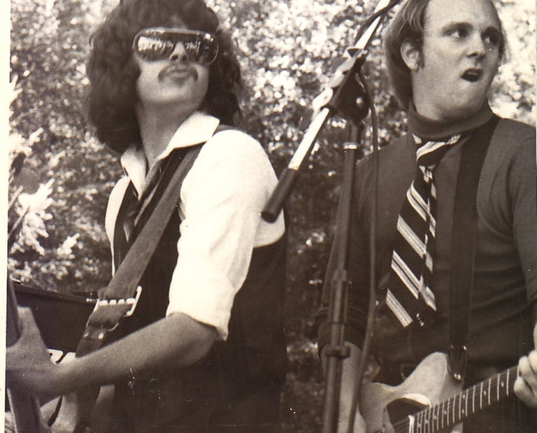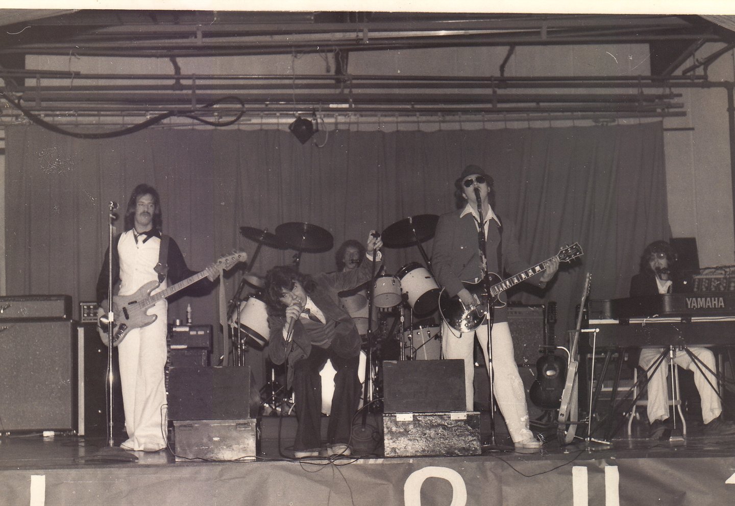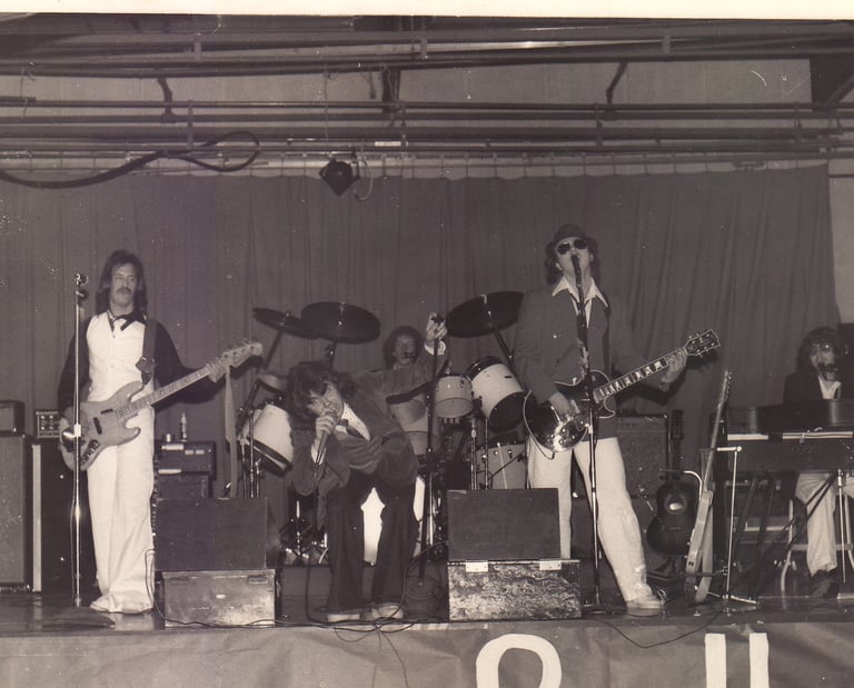 1978. Some school dance in the PAC NW. With the band that became Sneakers, not sure what we were called at this point. L-R: Johnny Zipgun, Dee Willy, Marquis Olsen, Billy Rich, and CC on piano.