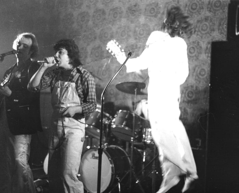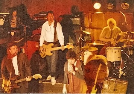 1979. BJ Kelly's Eugene OR. With Sneakers. This photo still bewilders me, BJK was one of our home gigs for many years. I always played stage left. I have no memory of ever playing stage right here.