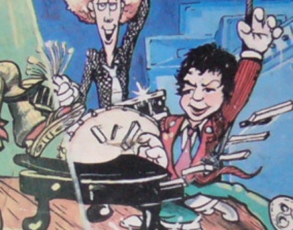 1980. Eugene OR. Inset of the front cover of the first Sneakers album Ear Cartoons. Drawing by Mick Chudy.