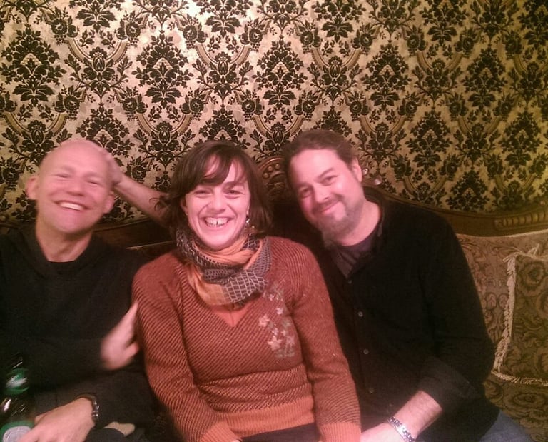 2014. Copenhagen Denmark. With the Listening Room. Susanne Christensen to the left, Henna Rissanen on the right, and I honestly cannot remember the name of the young soundman. Photo by Thera Dormans.