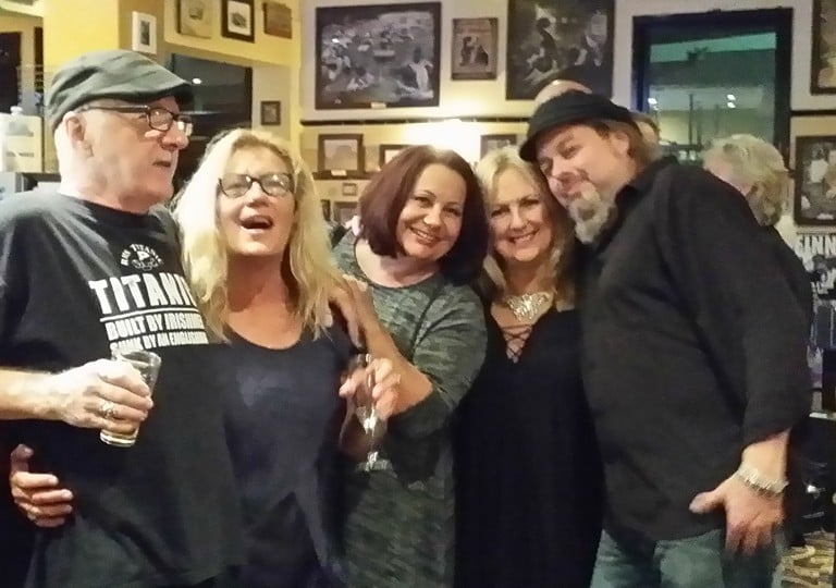 2017. Nashville TN. The Ryman, aftershow with the Cowsills. L-R: CC, Jude Johnstone, Paul Cowsill, Bob Cowsill, and Susie Cowsill down front.