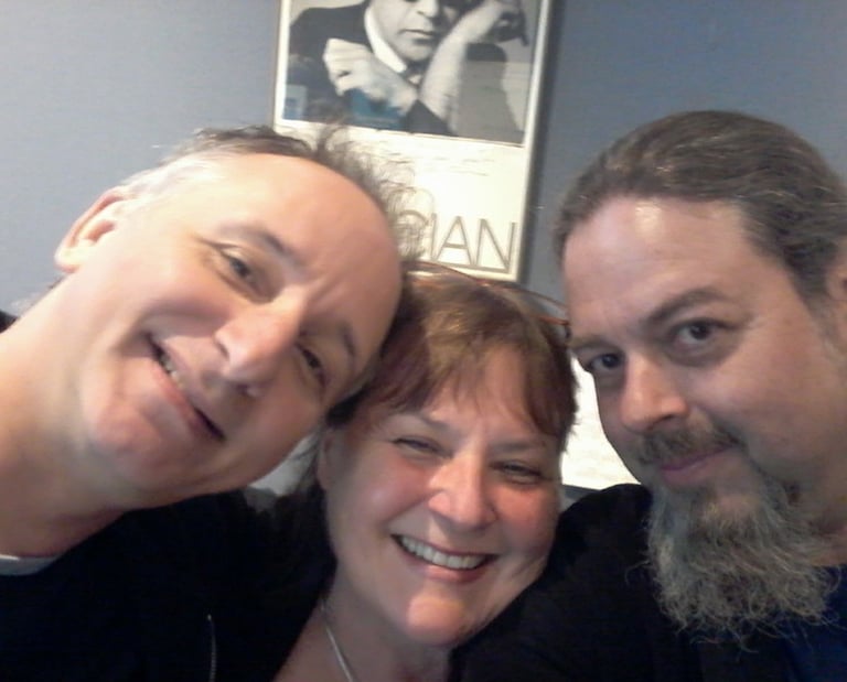 2019. Sydney NSW Australia. These next two are hard. The annual Big Rock Records Christmas party. Me, label boss Chris Turner (RIP), mastering engineer Dave Dempsey (RIP), and company director Phill Shute.