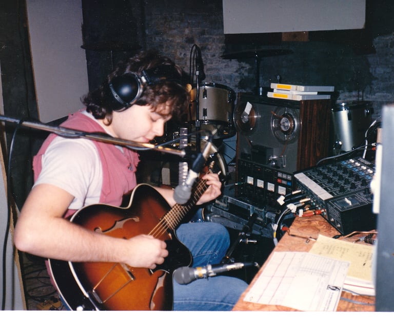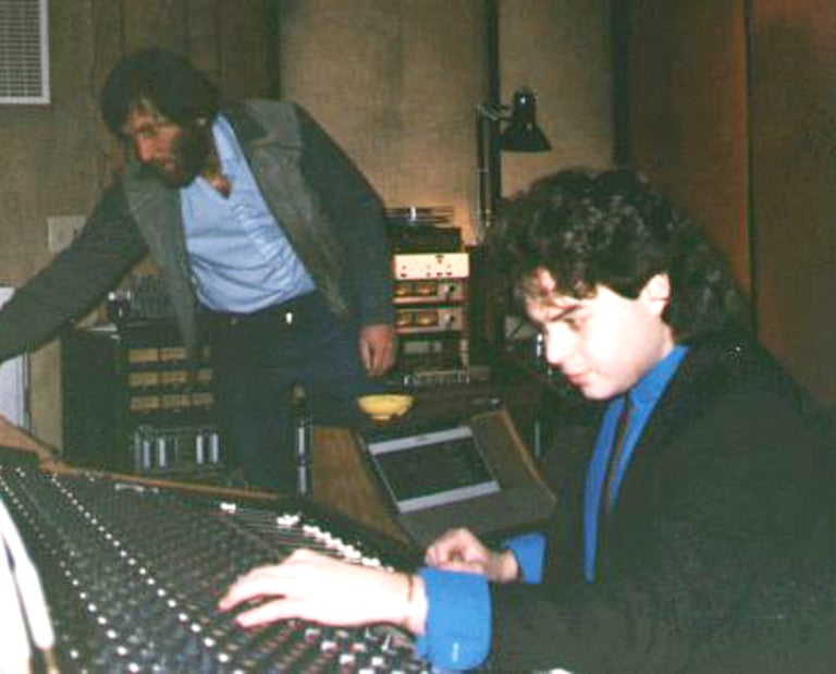 1984. Triad Studios, Eugene OR. Where we recorded both Sneakers albums, and my first solo release, Visible Tracks. With engineer, the late Peter Lorincz.