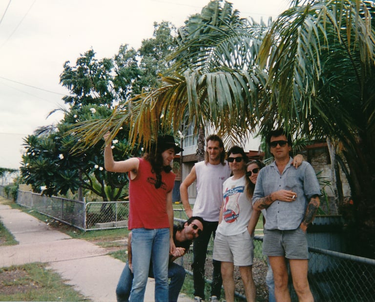 1990. Darwin NT Australia. The Big Rock Band. L-R: Teddy Pepper, the late Chris Turner, Mick Strutt, Peter Heckenberg, CC.