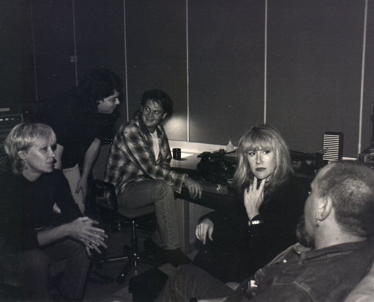 1994. Studio Centre, Nunawading VIC Australia. L-R: Lucy DeSoto, CC, Paul Norton, Wendy Stapleton, Peter Wells.