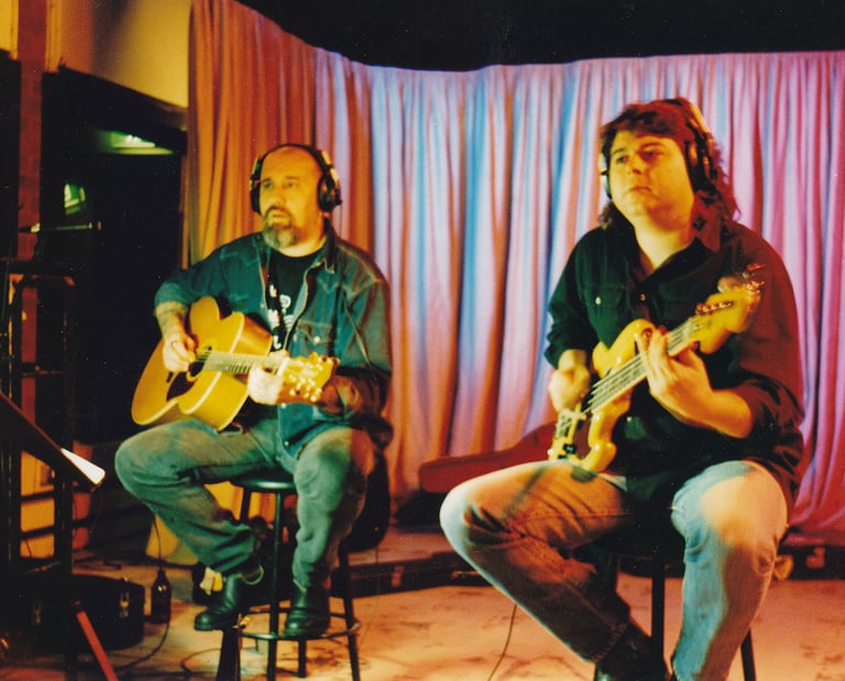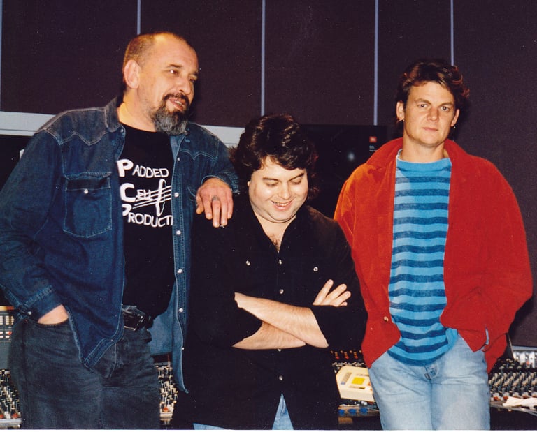 1994. Studio Centre, Nunawading VIC Australia. Recording the first Hillbilly Moon album. The late Peter Wells, CC, Paul Norton.