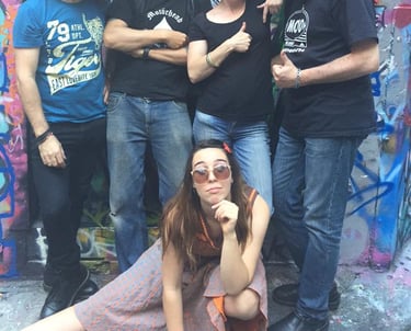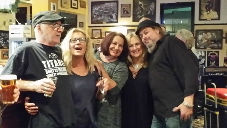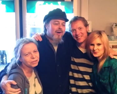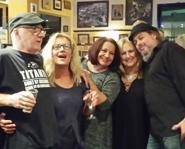 2017. Nashville TN. The Ryman, aftershow with the Cowsills. L-R: CC, Jude Johnstone, Paul Cowsill, Bob Cowsill, and Susie Cowsill down front.