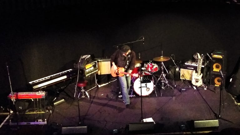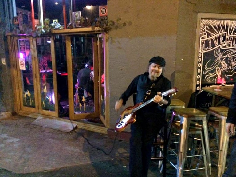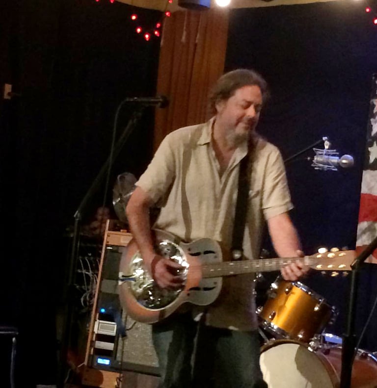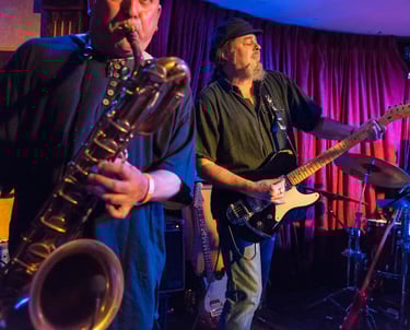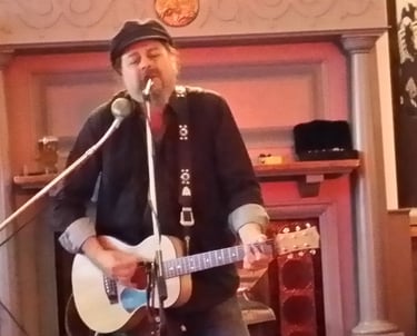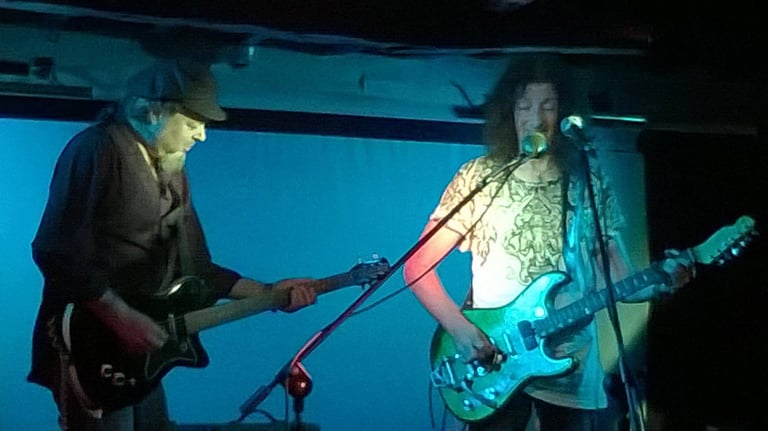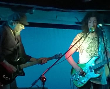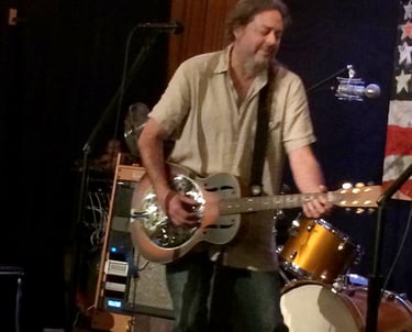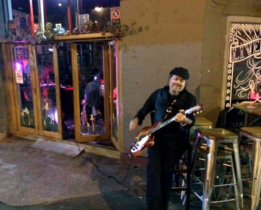 2015. Katoomba NSW Australia. Hotel Blue, with my 120th incarnation of " The Cletis Carr Band." That's former Nick Lowe drummer Peter Wale behind me. Photo by Victor Zubakin.