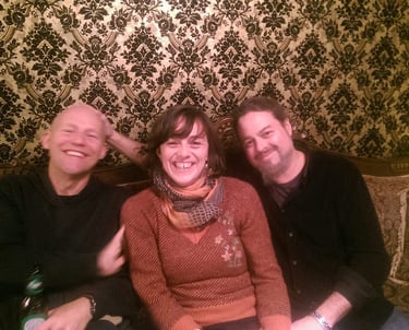 2016. East Nashville TN. The Family Wash. A little grainy, but I do love this photo of Tim Carroll, Luella Mathes, and myself.