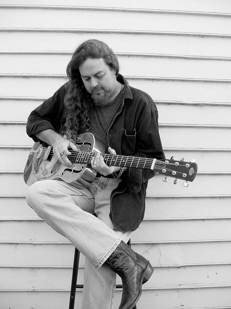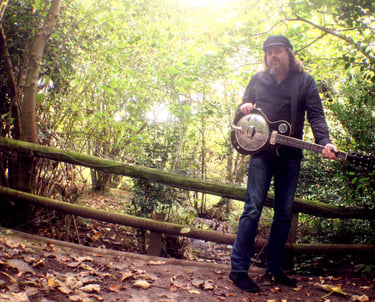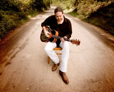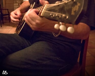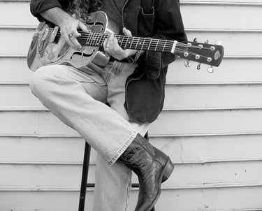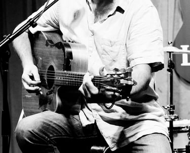 2016. Wimberly TX. Playing Kevin Welch's 1930's archtop. Photo by Holly O'Hare.