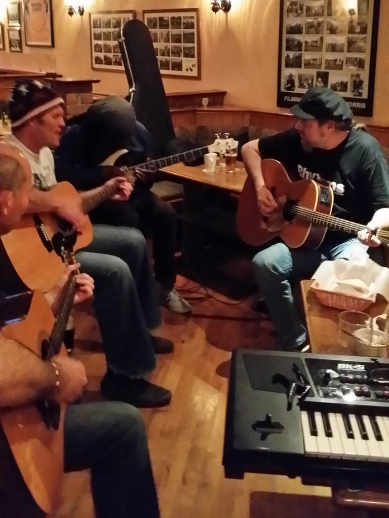 2014. County Sligo, Ireland. Brennan's family pub in Cloonacool. Thought I'd been invited to a trad Celtic session, but they kept asking me to play Johnny Cash, Hank Williams, etc.